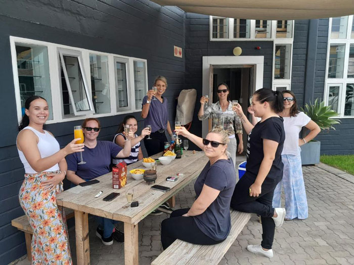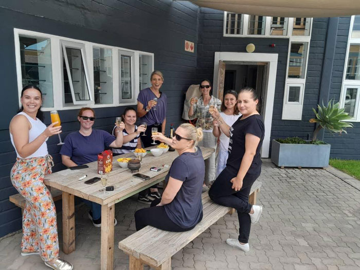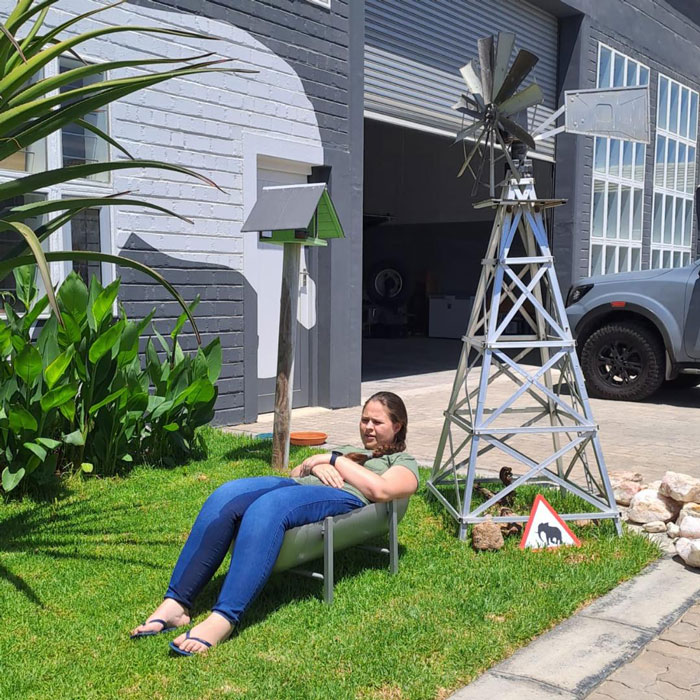 Sunhild ist unser namibischer „Re-Import“. Im schönen Schwarzwald in Deutschland aufgewachsen, standen Besuche bei der namibischen Familie in der Nähe von Witlvei regelmäßig auf dem Programm. Auf zahlreichen Reisen quer durch Namibia wurden ihre Neugier auf Land und Leute schon früh geweckt. Nach dem Schulabschluss in Deutschland absolvierte Sunhild zunächst eine Ausbildung als Ergotherapeutin, arbeitete einige Jahre in Bayern und nahm dann eine Stelle als Farmlehrerin bei einer deutschsprachigen Familie im Süden Namibias an. Damit war der Umzug von Deutschland nach Namibia erfolgt. Mit dem Umzug nach Swakopmund ist Sunhild Teil unserer Familie geworden. Im Beruflichen wie im Privaten gilt für Sie das Motto “A jack of all trades is a master of none, but oftentimes better than a master of one.”, was sich in einer Vielfalt von Fähigkeiten und Wissen in den unterschiedlichsten Bereichen widerspiegelt. In ihrer Freizeit singt Sunhild gerne im Chor, liest, leitet Tanz- und Rhönradturngruppen oder geniesst einfach die Ruhe daheim, um sich ihrem Langzeit-Handnähprojekt zu widmen.